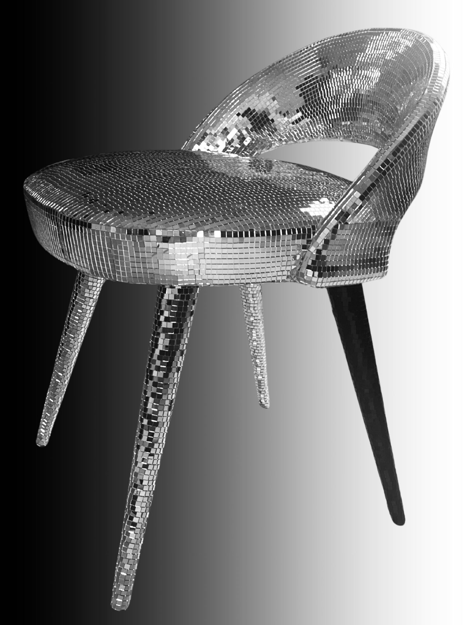 Chaise / Tabouret décoratif en mosaïque disco argentée