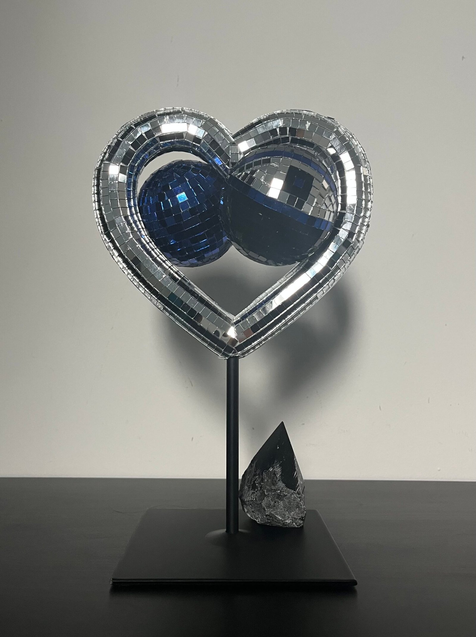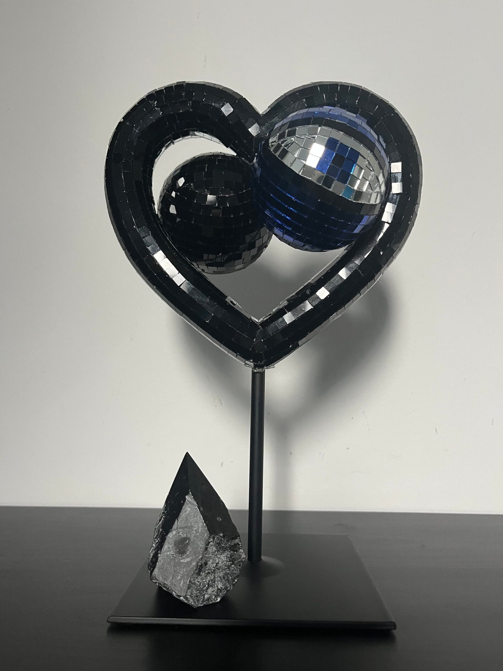 Découvrez un symbole puissant d’émotion, de protection et d’équilibre avec Guarded Heart, une sculpture mosaïque disco saisissante montée sur un socle solide. Cette œuvre d’art contemporaine présente un cœur central moitié argent, moitié noir, gardé par deux yeux symboliques, incarnant la conscience, la vigilance et la protection contre les énergies négatives.